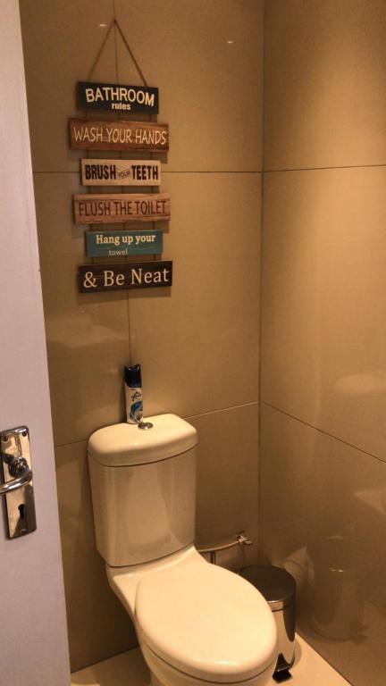 Man's cave and guest toilet.